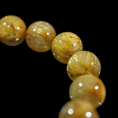 注文から2-3日以内に配送(土日除く)このブレスレットは、高品質なブラジル産ルチルクオーツ(クリアタイプ)を使用しています。内包された黄金色のルチル(金線)が魅力的で、その輝きが「金運の石」として多くの方に親しまれています。ルチルクオーツは、特有の針入り水晶としても知られ、独特の内包物(インクルージョン)が特徴です。